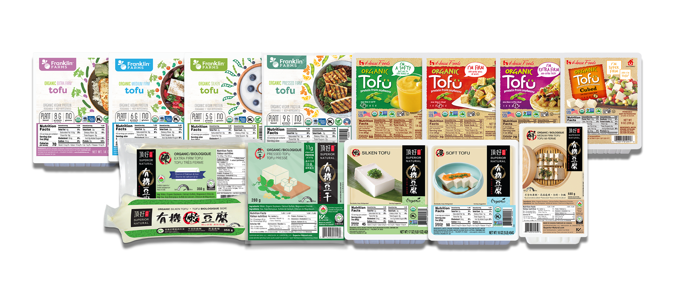 Organic Tofu Franklin Farms, House Foods, and Superior Natural offer a variety of organic tofu in various firmness levels. To learn more about our organic tofu collection, please visit our brand’s websites. Specialty Tofu